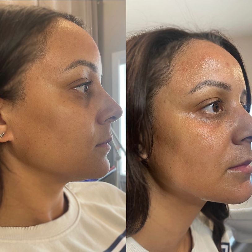 A combination of Botox, Hyaluronic acid, and Vitamins are placed into a micro-stamping device which infuses them into the skin. This device creates micro injuries to the skin which helps promote collagen production (similar to micro-needling, however less invasive). The Botox will smooth out the skin, reduce pore size, and excess oil production. Hyaluronic acid hydrates the skin, and various vitamins can be added to target any other concerns you may have. This is a relatively painless treatment. Topical numbing cream is applied for added comfort.